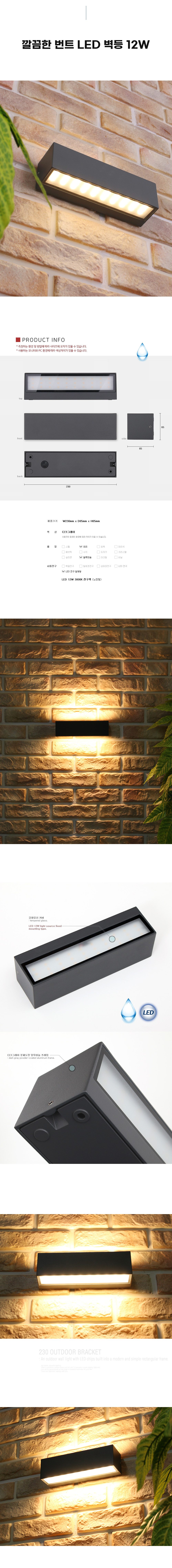 LED 12W 번트 직사각 실내/실외 벽등