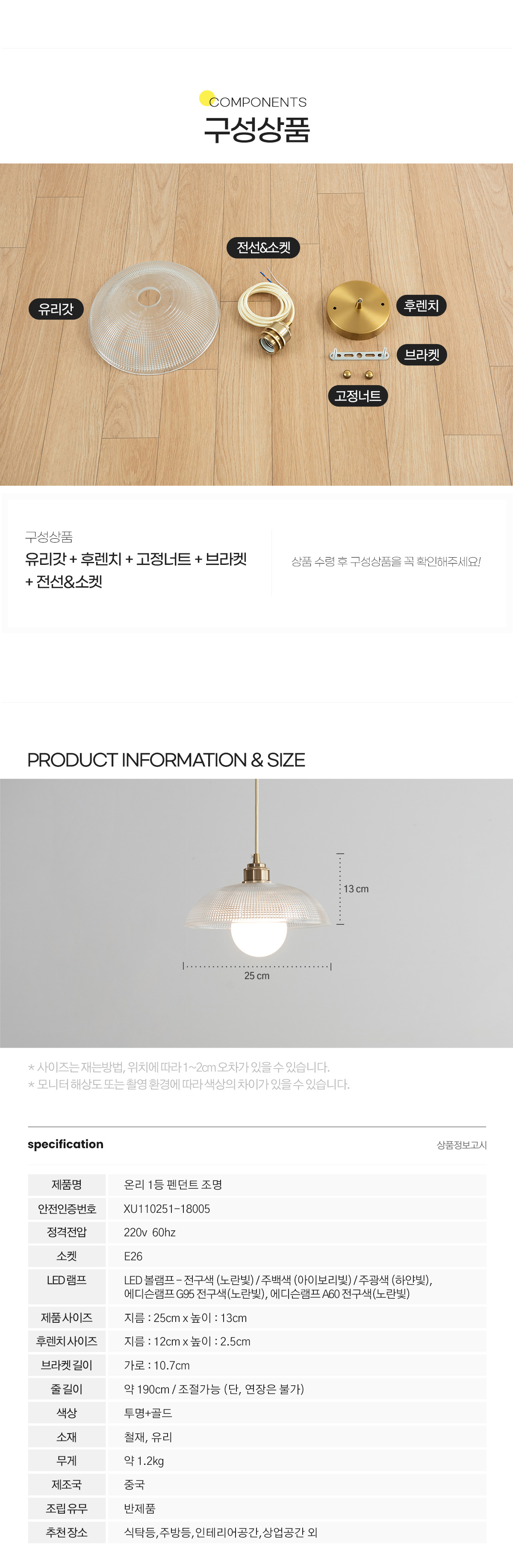 온리 1등 글라스 팬던트 조명