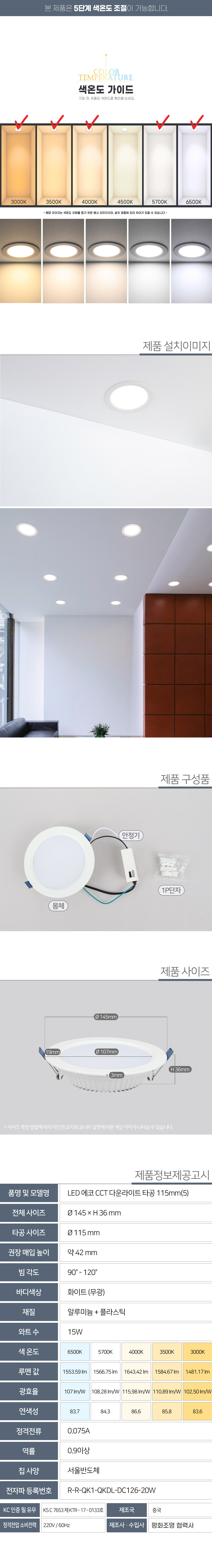 5색변환 5인치 다운라이트 15W