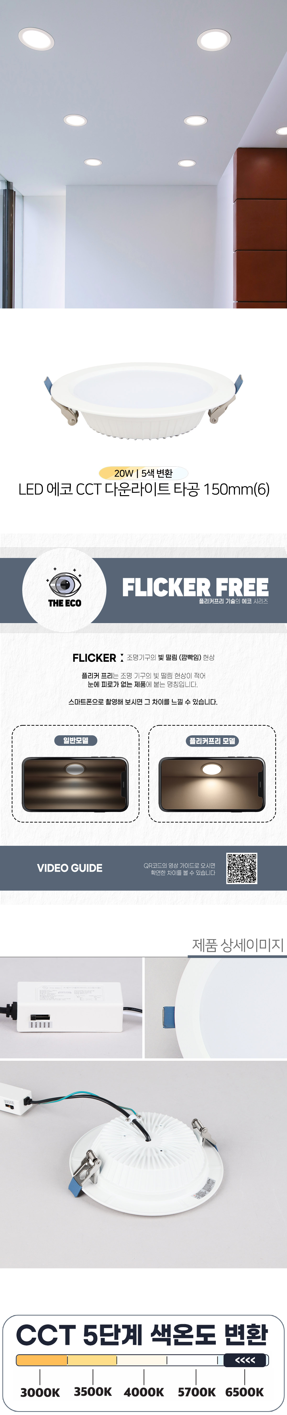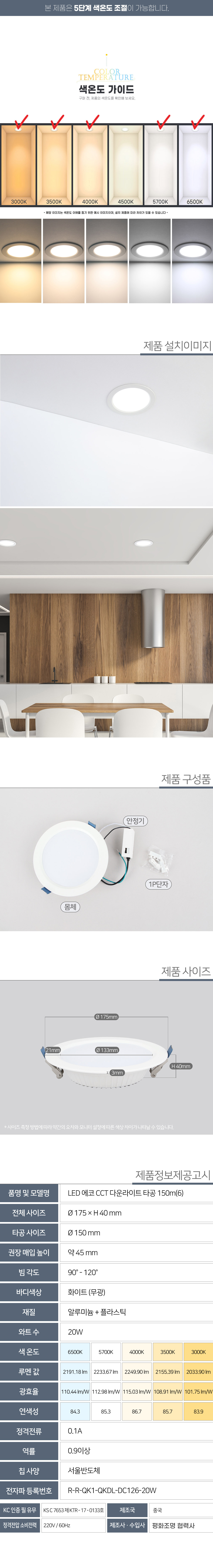 5색변환 6인치 다운라이트 20W