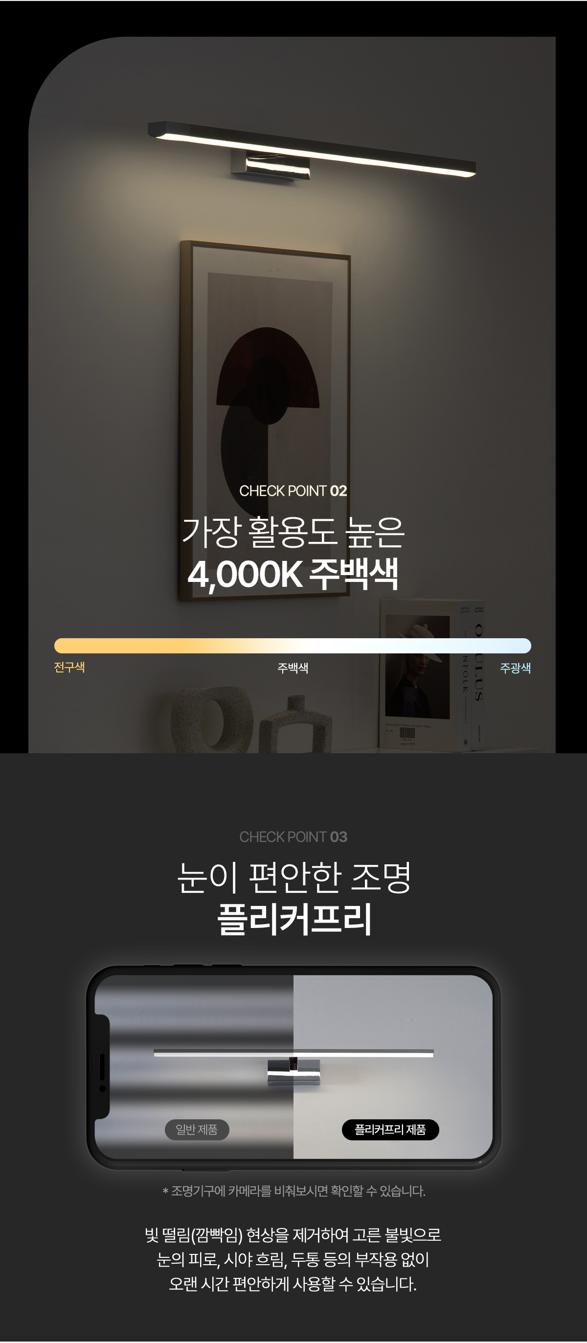 크롬 색상의 LED 갤러리 벽등 입니다. 주백색 4000K
