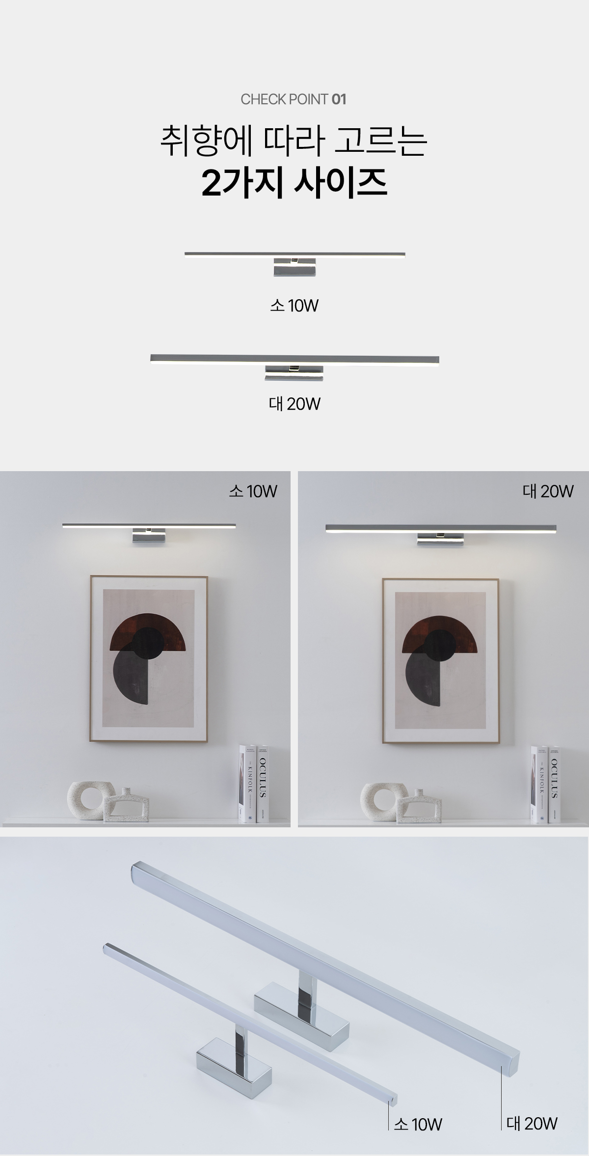 LED 그림벽등 크롬색상 간접벽등 갤러리조명 대 20W (주백색 4000K)