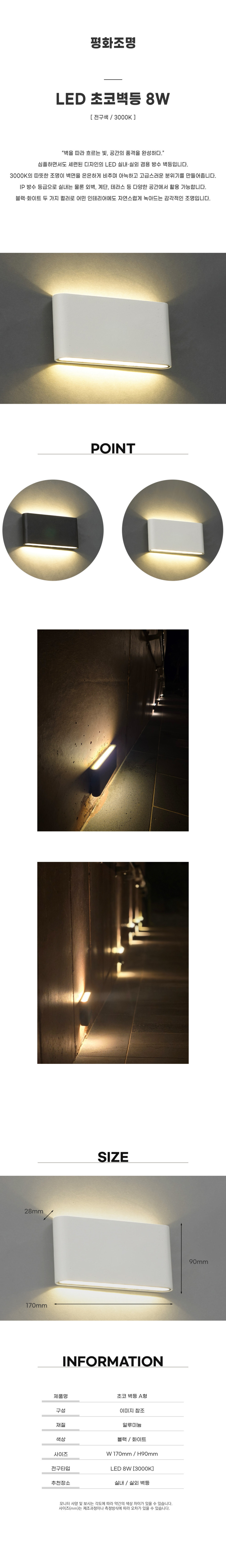 슬림한 사이즈의 슬림 벽등 입니다. LED 8W / 전구색 3000K