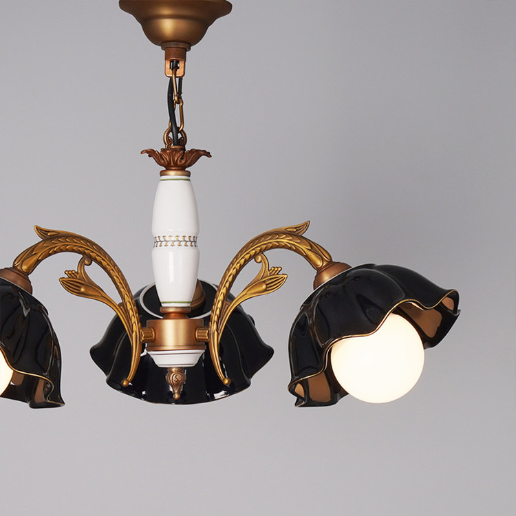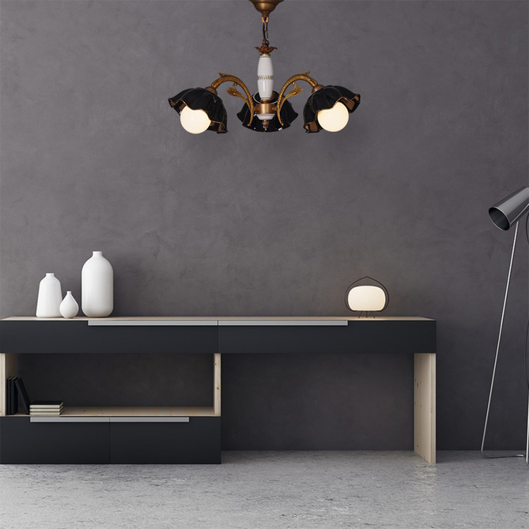 국산 나비 블랙 도자기 3등 주물 팬던트 조명