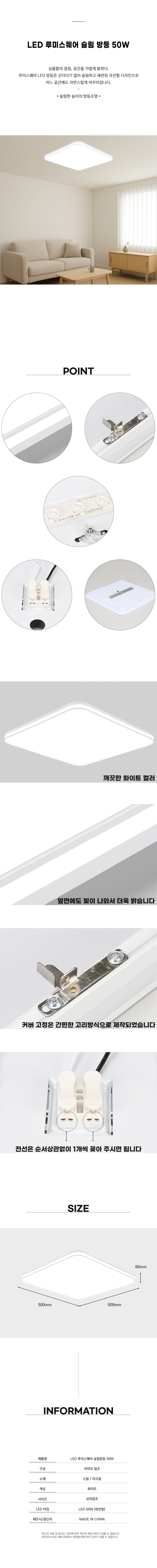 슬림 LED방등 50W 얇은조명 화이트 LED 50W 하얀빛