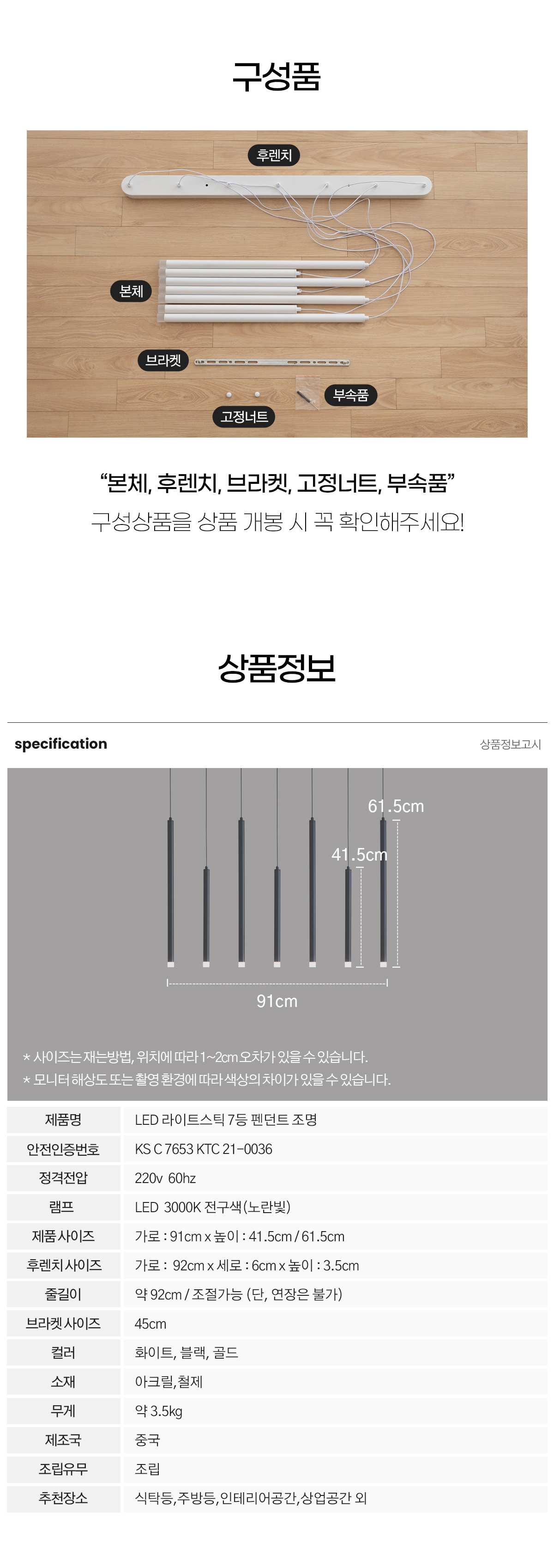 LED 라이트스틱 7등 펜던트 식탁등 인테리어조명 블랙