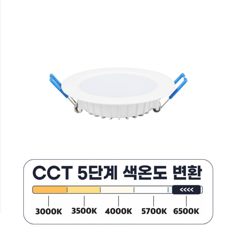 전구색상 고민끝!! 5가지 색상이 모두 들어있는 4인치 매입등 입니다. 기구 버튼으로 색을 정하실수있어서 조명의 색상이 고민일때 이제품 하나만 있으면 고민 끝입니다!