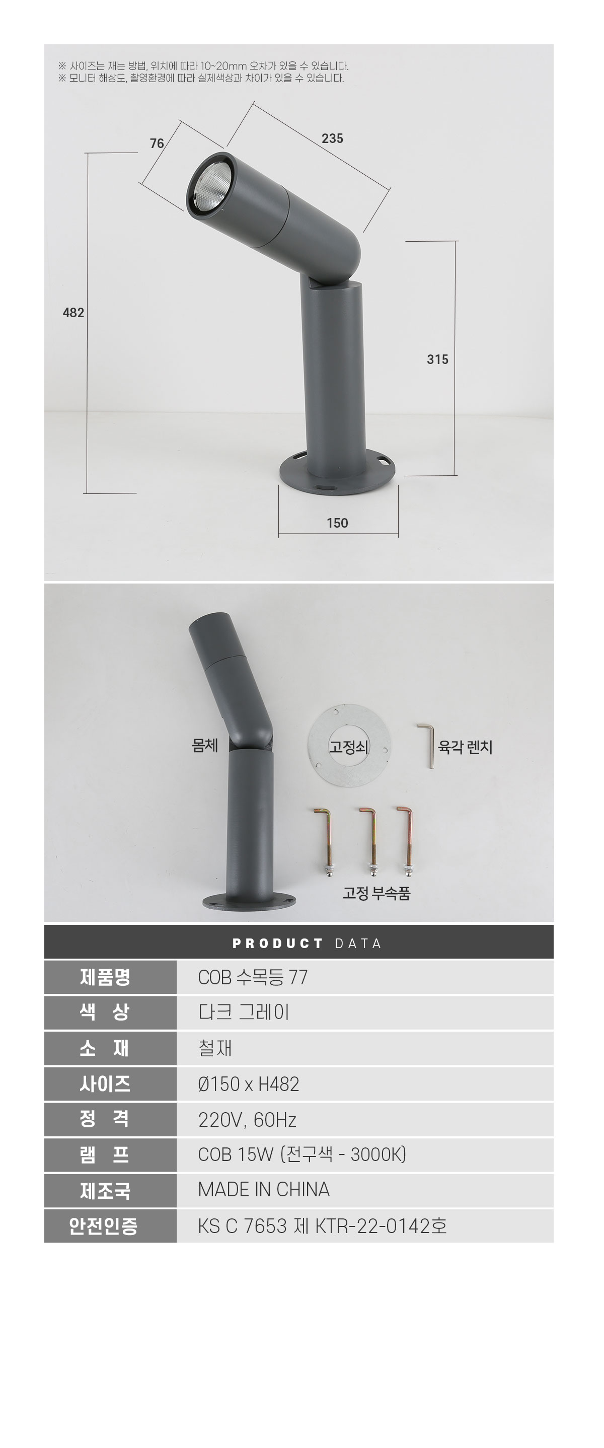 LED COB 수목등 77 원통 얇은 각도조절 조명 방수등