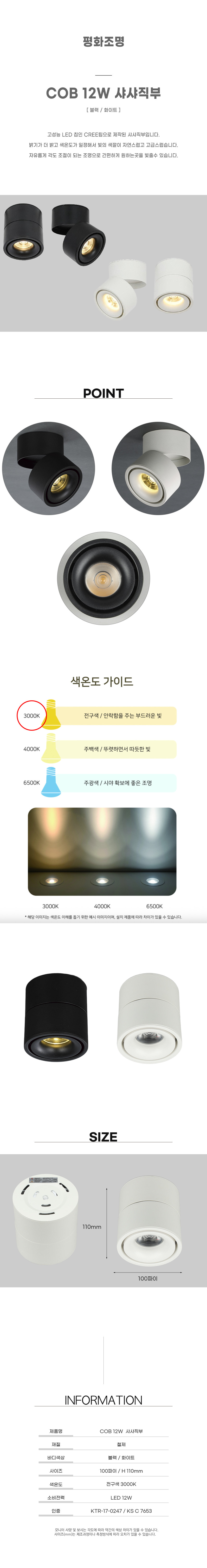 LED12W 각도조절 직부 원통 COB 조명 천장 등기구