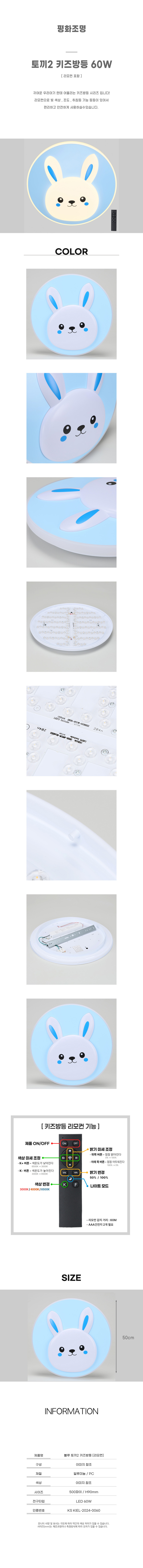 키즈방등 리모컨 블루 토끼2 아이방조명 60W 아기방전등