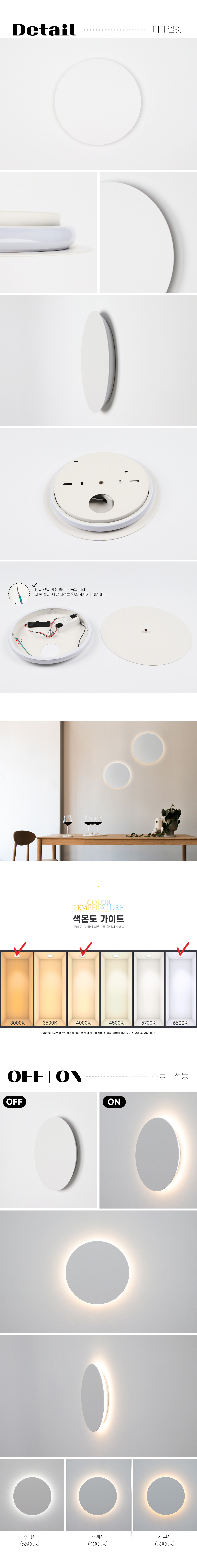 LED 에코 코르 원형 터치 센서 벽등 300파이 10W 플리커프리