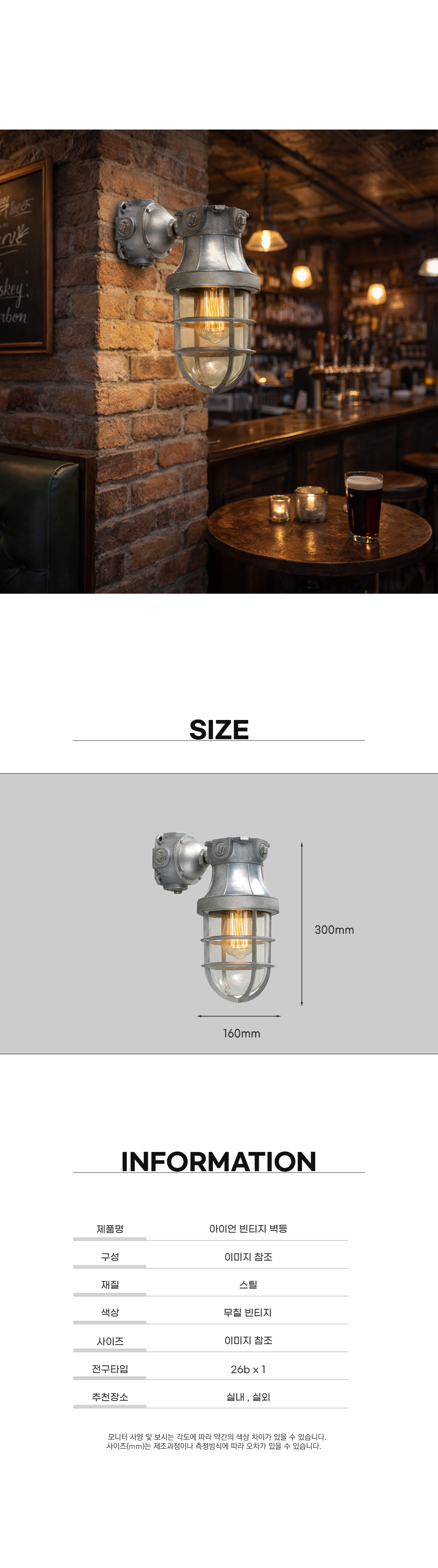 아이언 빈티지 벽등 [전구별도]