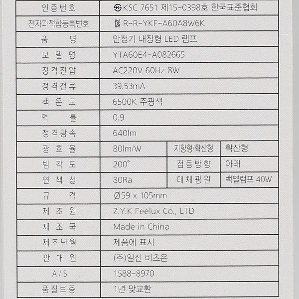 벌브 8W LED 주광색