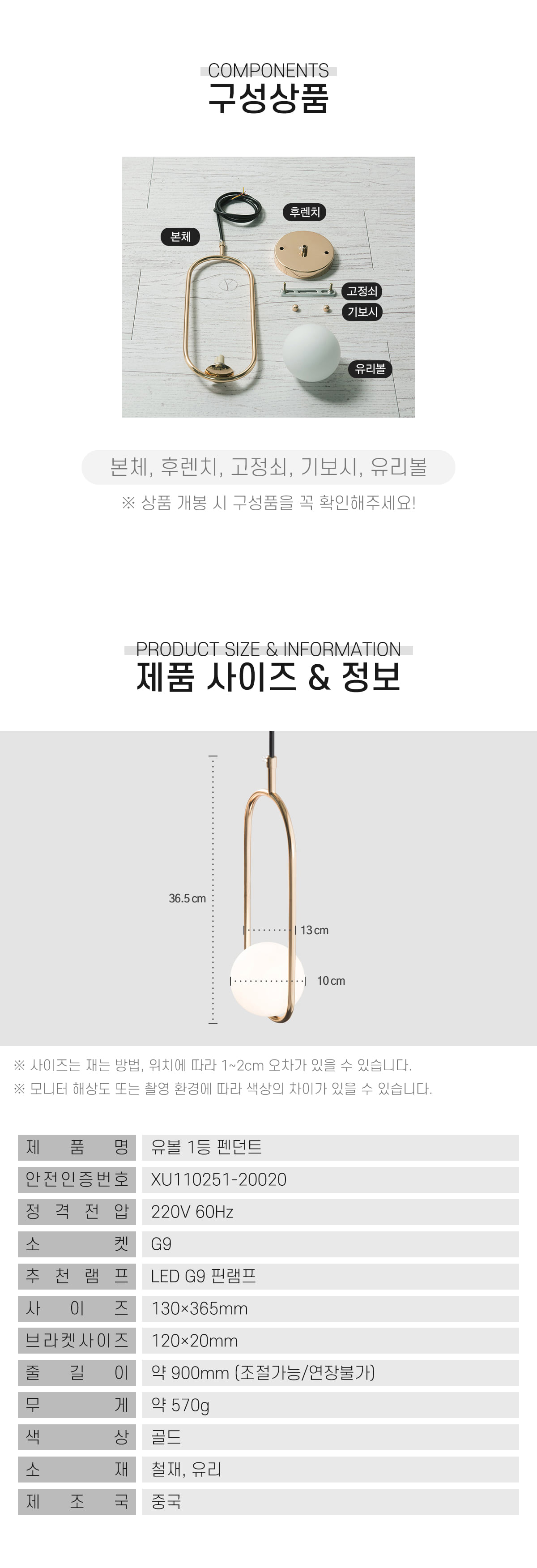 골드 유볼 1등 팬던트 조명